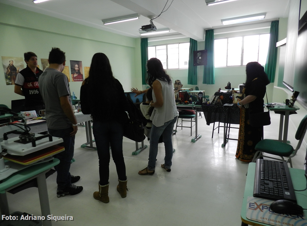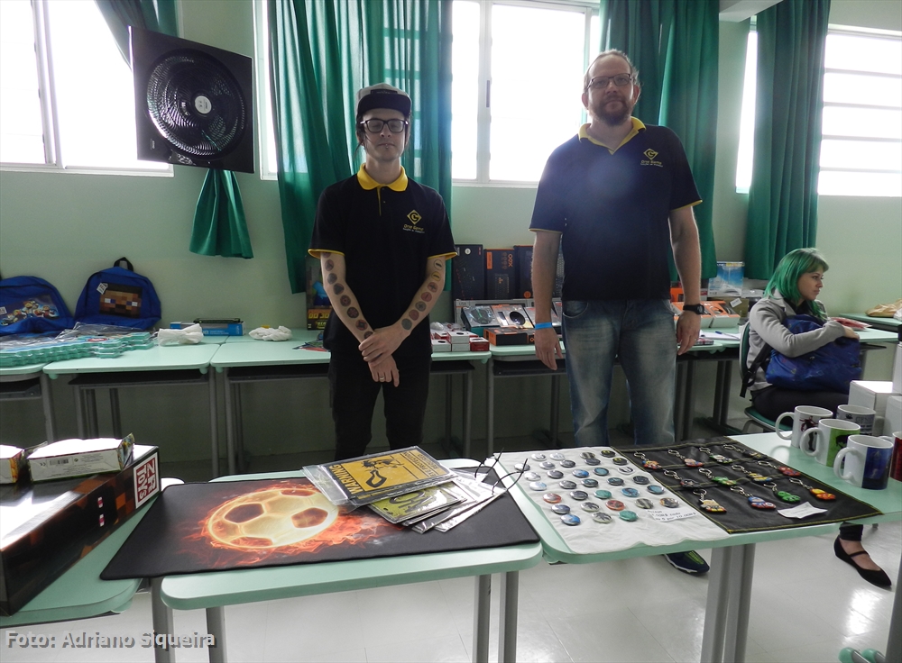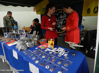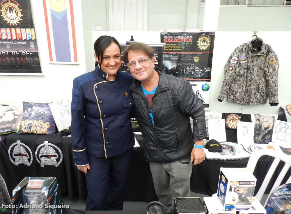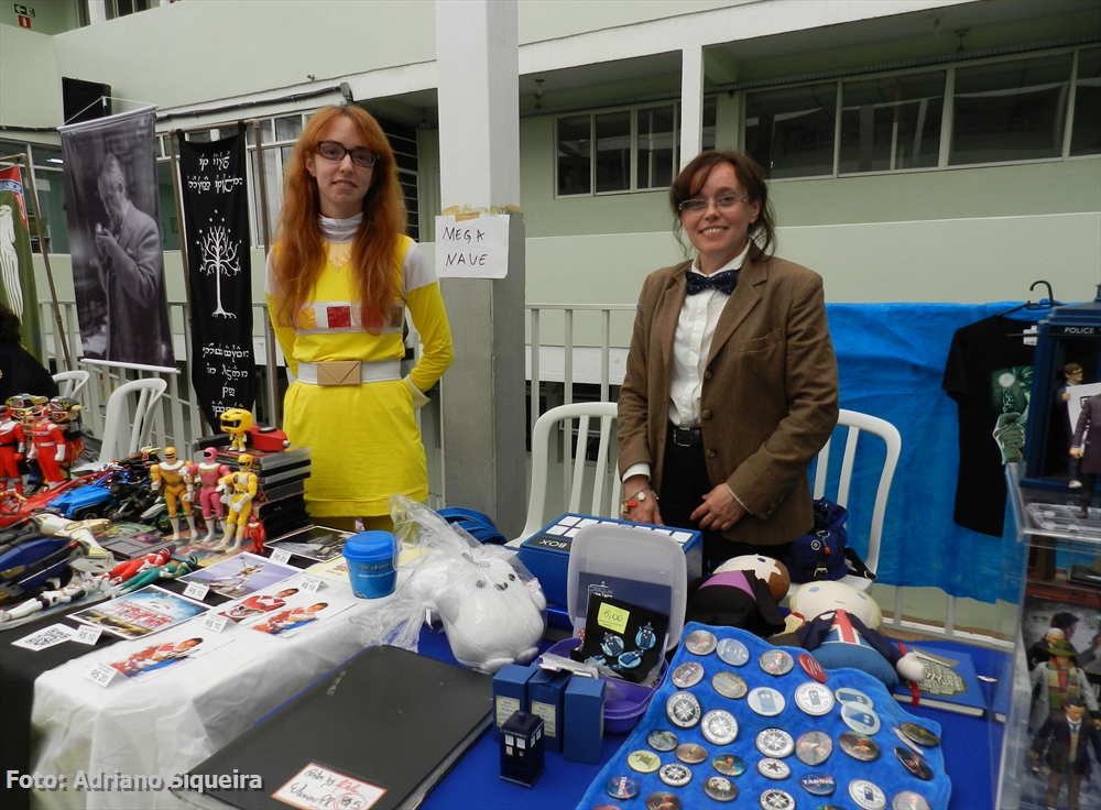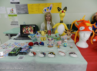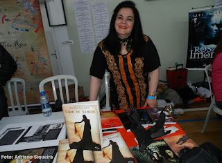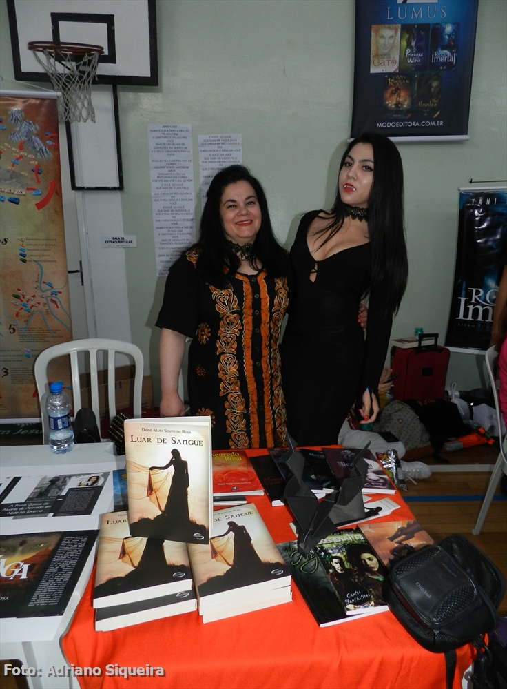 Dione M. S. Rosa visitando o estande Museu dos Vampiros