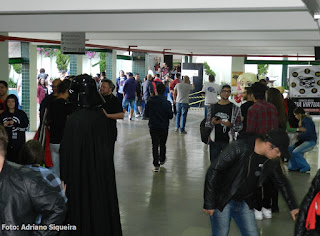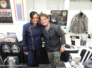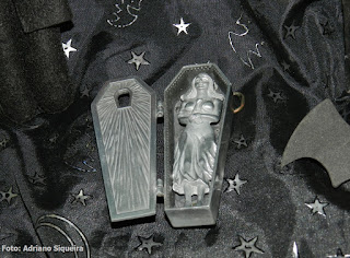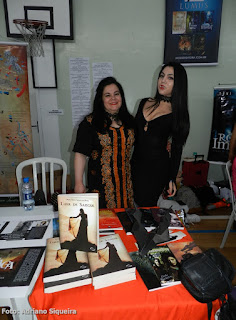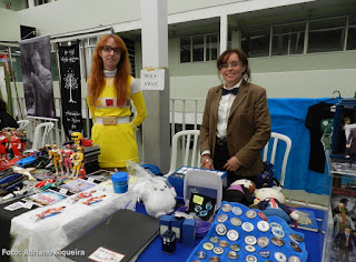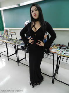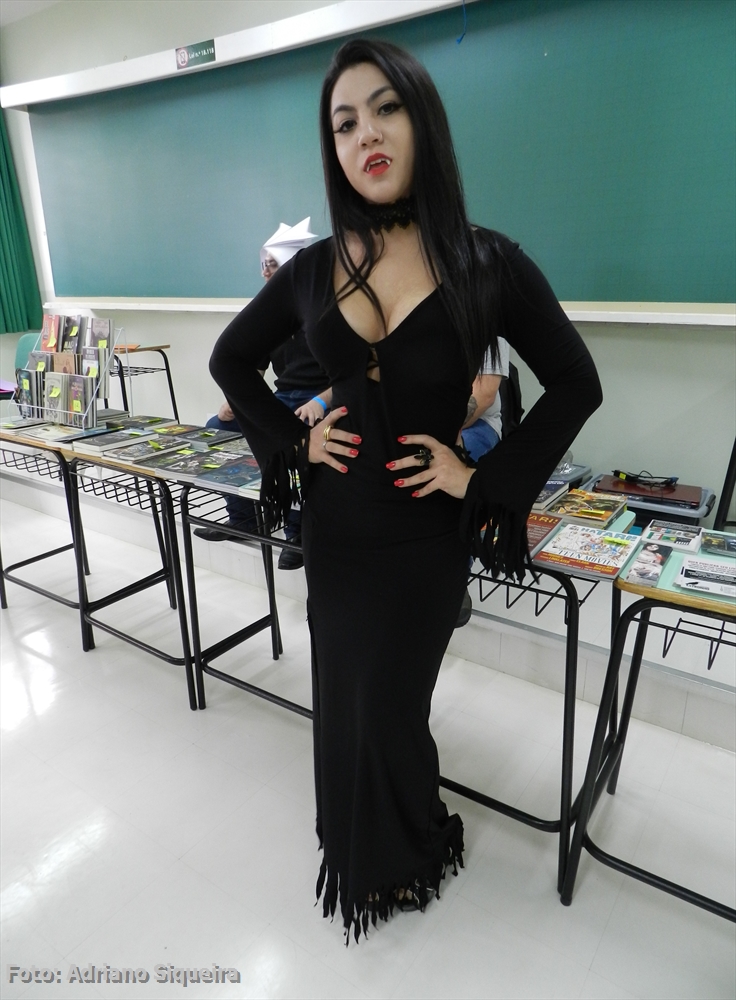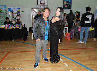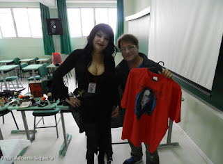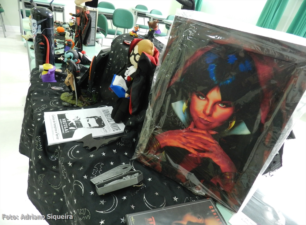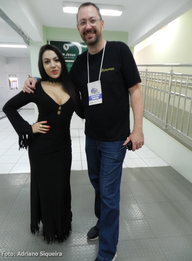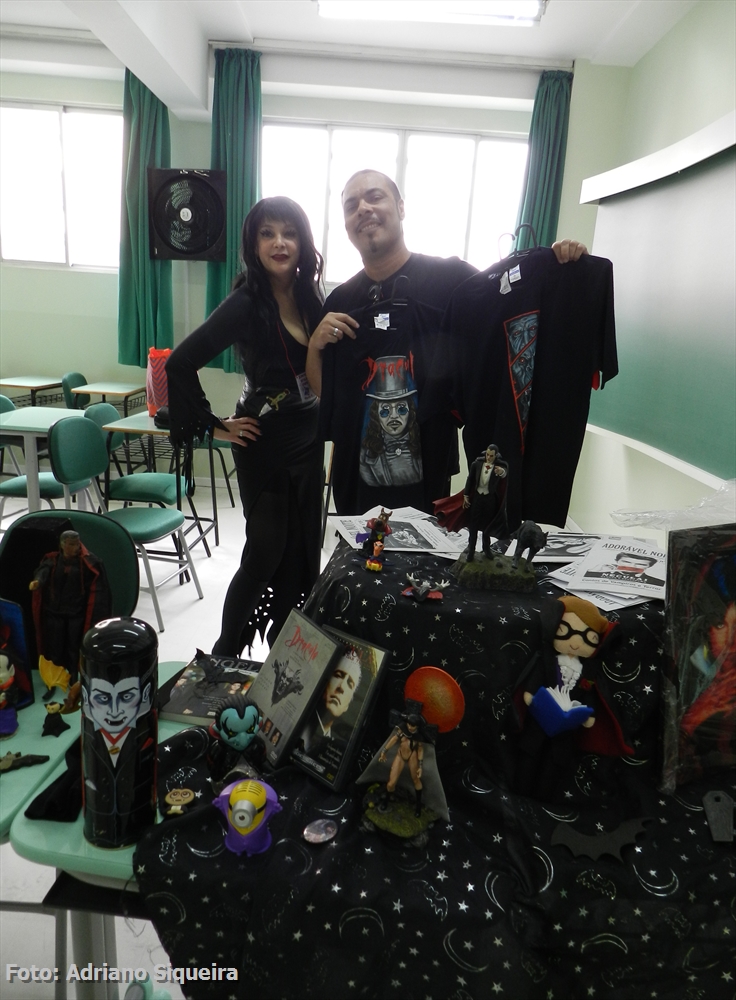 Elvira visitando o estande "Museu dos Vampiros de Adriano Siqueira