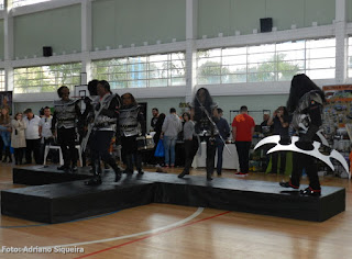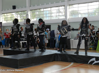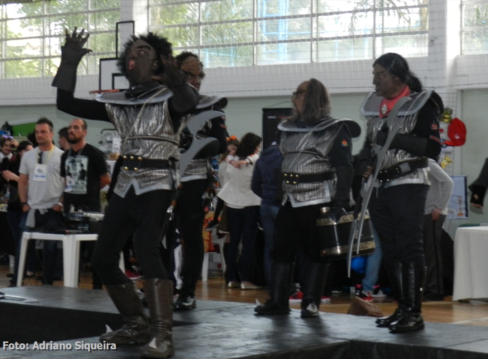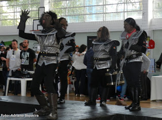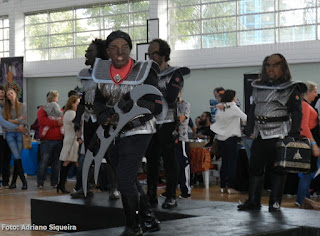 Vampirelle visitando o estande "Museu dos Vampiros"