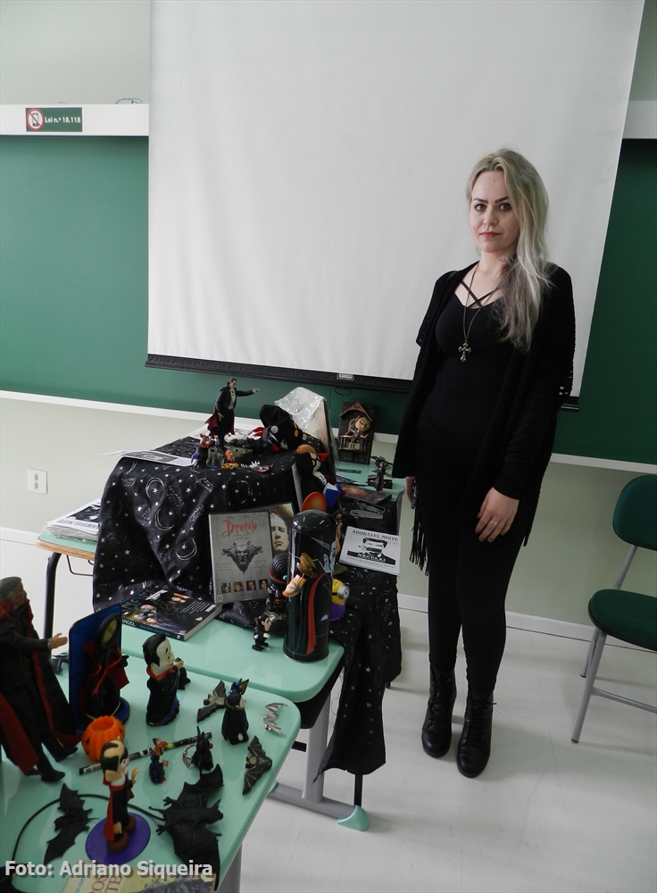 Heidi Gisele Borges visitando o estande Museu dos Vampiros
