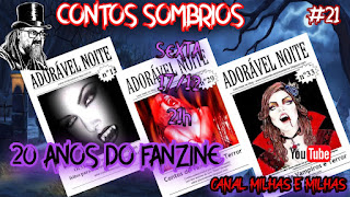 Nesta sexta-feira as 21hs Adriano Siqueira estará conversando sobre os 20 anos do fanzine Adorável Noite. Além de ter novidades sobre Revista 666 Terror que lançou a numero neste mês e também, para completar os presentes do programa Cassio Witt narrou um conto gótico fantástico do escritor Adriano Siqueira.